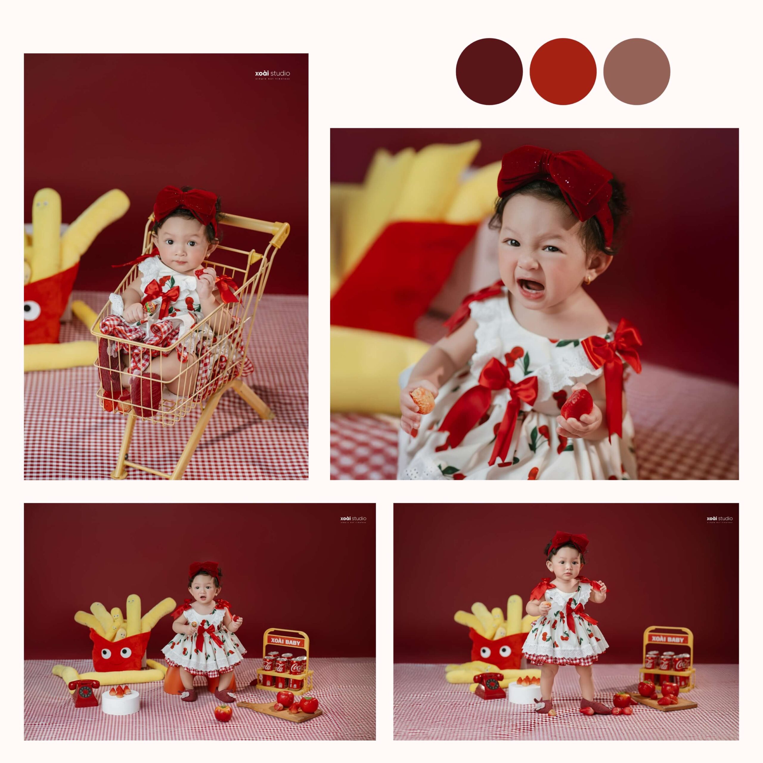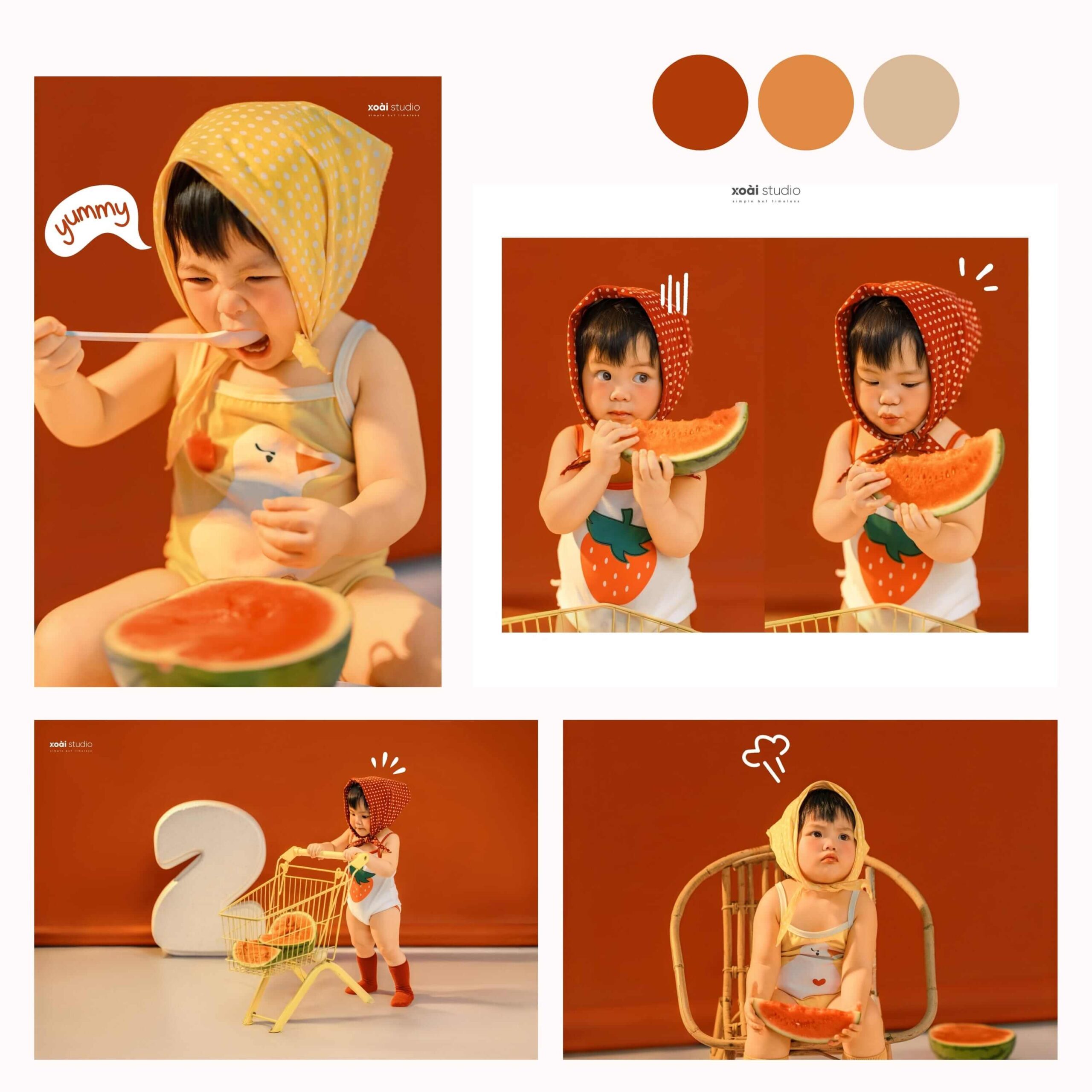 Ở Xoài Baby chúng tôi luôn tạo ra những xu hướng mới nhất, để đáp ứng mọi nhu cầu của khách hàng. Không những dày công suy nghĩ, chọn lọc ra từng Concept độc đáo để phục vụ bé và gia đình theo từng chủ đề, mà chúng tôi còn tỉ mỉ thiết kế những phụ kiện kèm theo dành cho bé độc nhất vô nhị chỉ có tại Studio của chúng tôi.